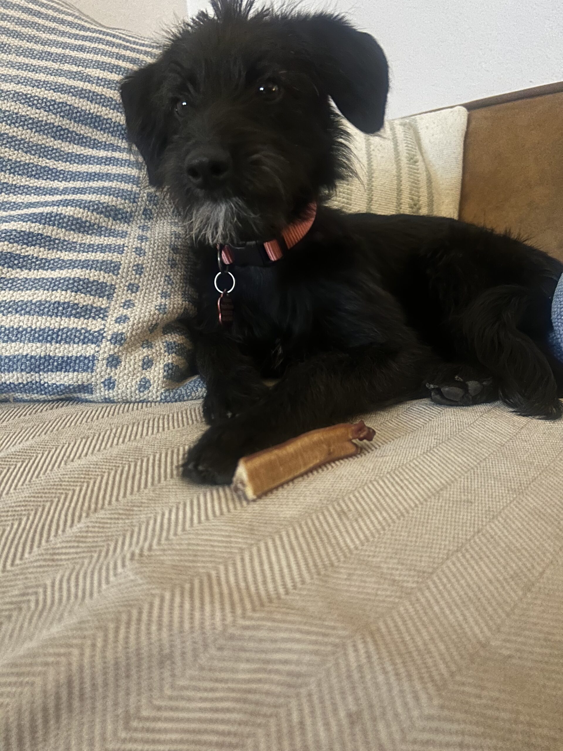Amy is crate & potty trained. She is super smart & treat motivated. Training will be a breeze. Amy is the smallest of her littler at 15lbs and will be a tiny dynamo. Based on her hair pattern, she will not be 100% hypo allergic. She is in a short summer cut and might very well look more like her border collie mom when her hair grows out.