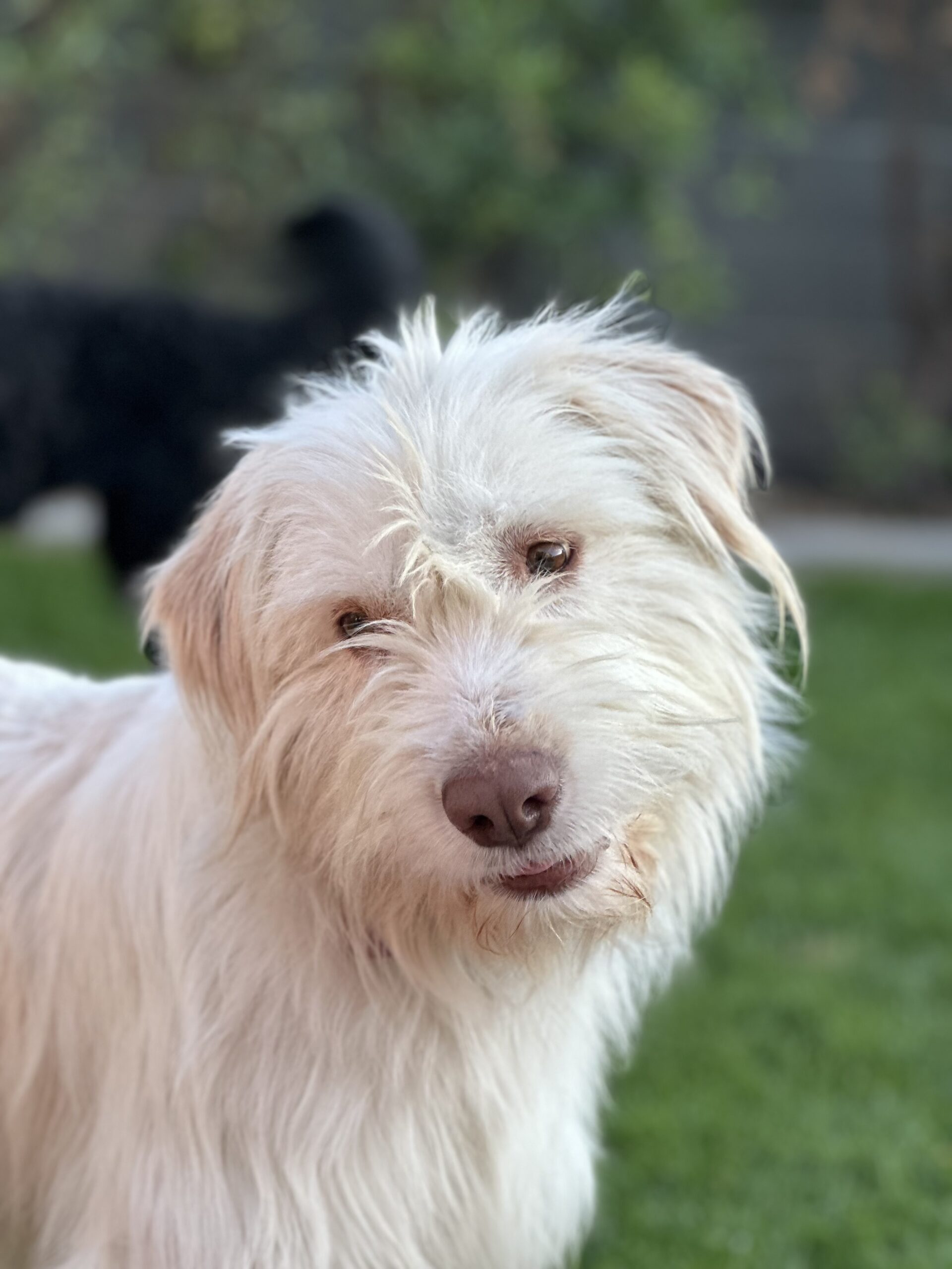 She is potty trained, kennel trained, gets along with small and large dogs both male and female. Loves frozen fruit, carrots, cuddles, looking out the window and lounging outside. She is not destructive. Minds when you say down/off. She is a smart cookie and will make a great dog. She doesn’t like loud noises and goes to the kennel when she is scared. Total love bug!