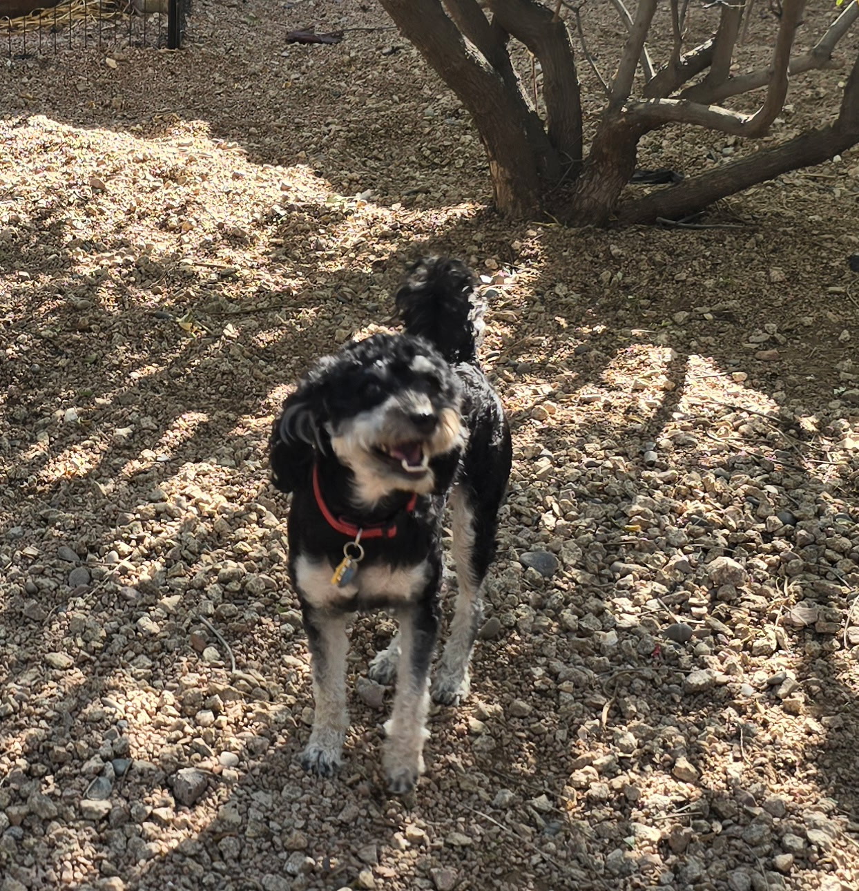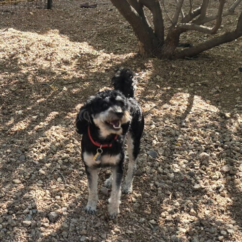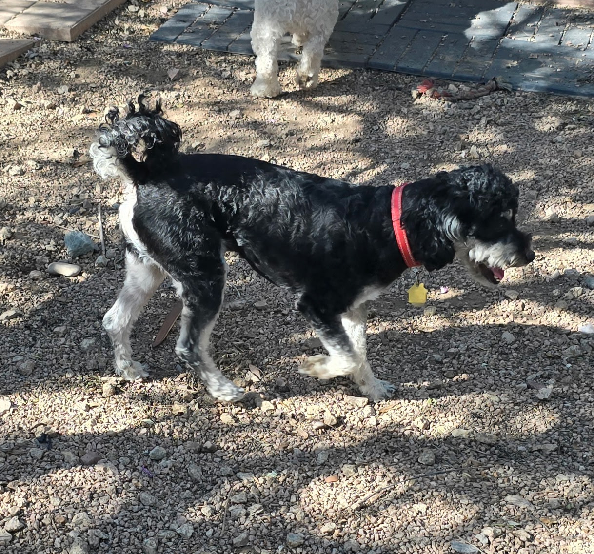 Batman is a sweet poodle schnauzer mix. He's housebroken, walks on a leash and doesn't climb on furniture unless invited. He gets on well with other small dogs. He can be vocal, so apartment or condo life wouldn't work well for him.Batman is neutered, fully vaccinated and microchipped. His adoption fee is $700.00