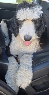 Crate trained and housebroken, as a puppy, Bernie is learning quickly, though his puppy energy can occasionally lead to a little digging if boredom strikes. But don’t let that fool you—this snuggler loves nothing more than curling up on your lap for cozy cuddles!