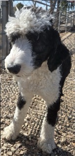 This charming black and white pup weighs in at 44 pounds and is currently living the good life on a farm with his loving foster family. Bernie thrives on playdates with kids of all ages and is always ready for fun!