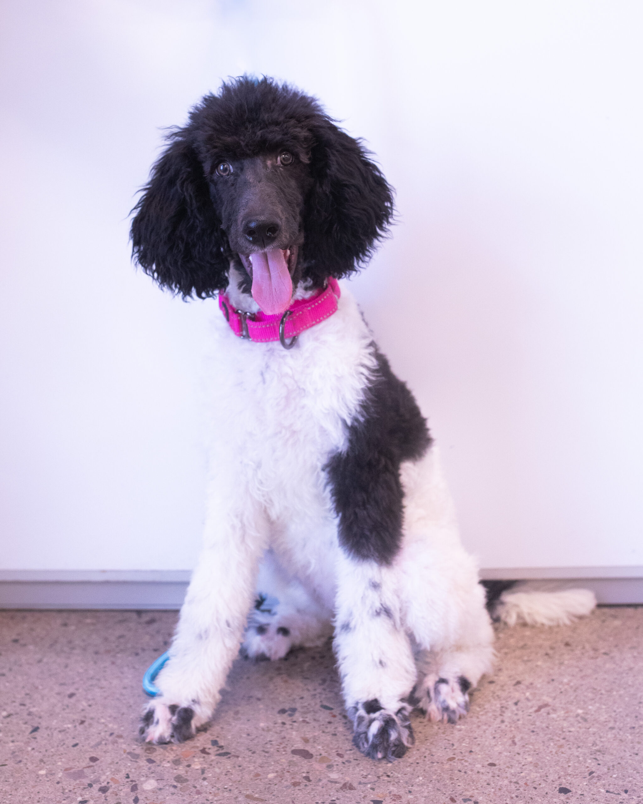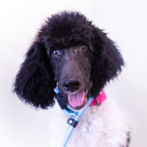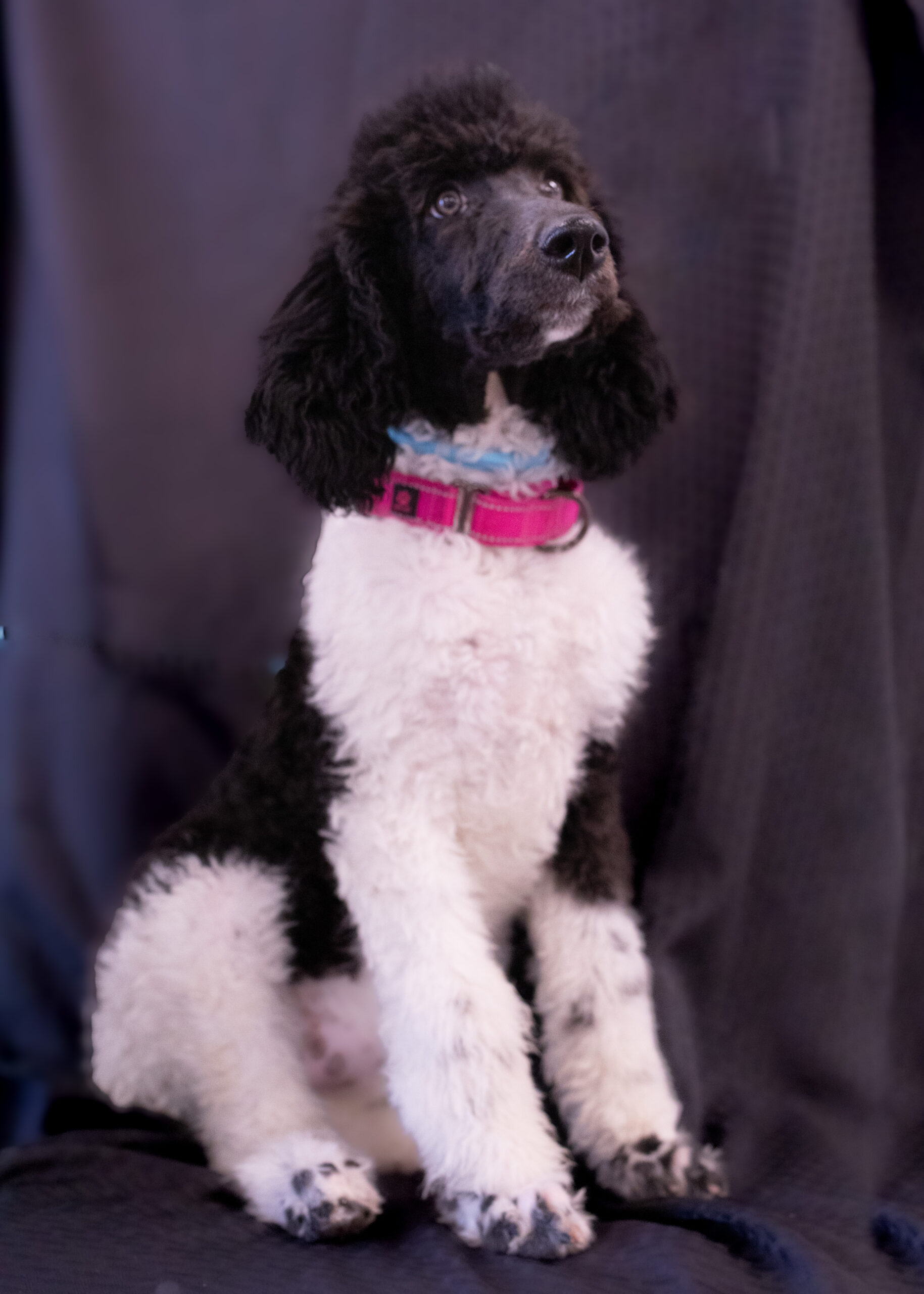Jazmine is a beautiful, happy, small standard poodle puppy. Jazmine is the outgoing and prances around without a care in the world. She is just about perfect, except for her vision.