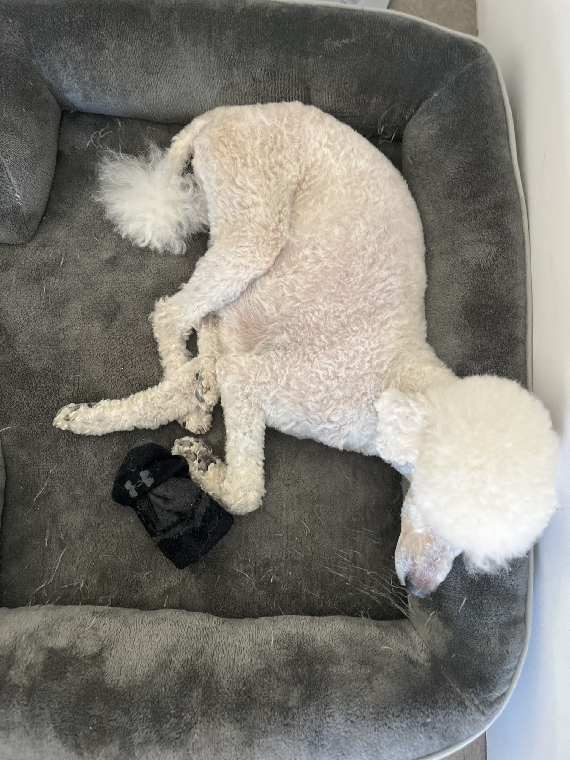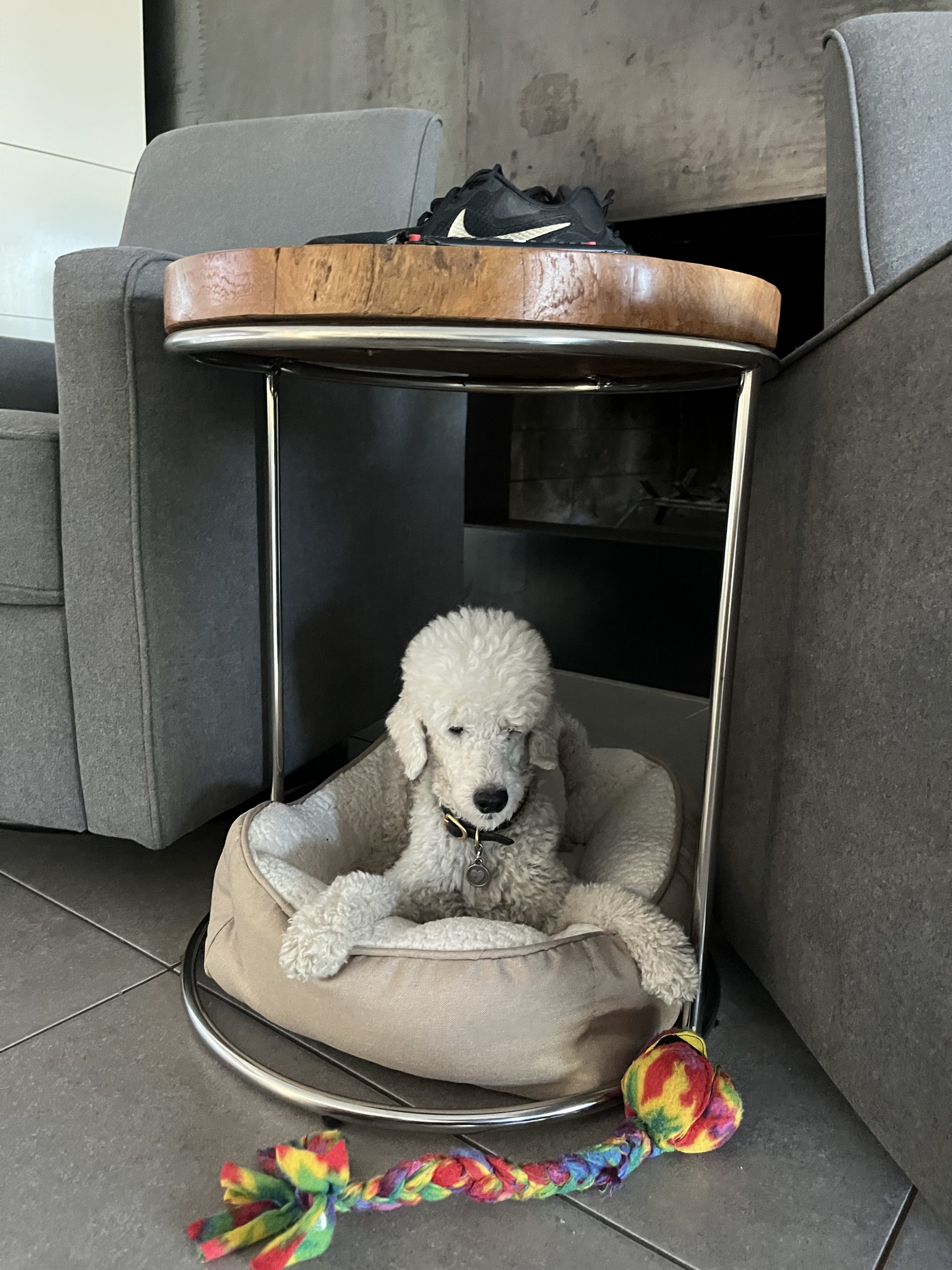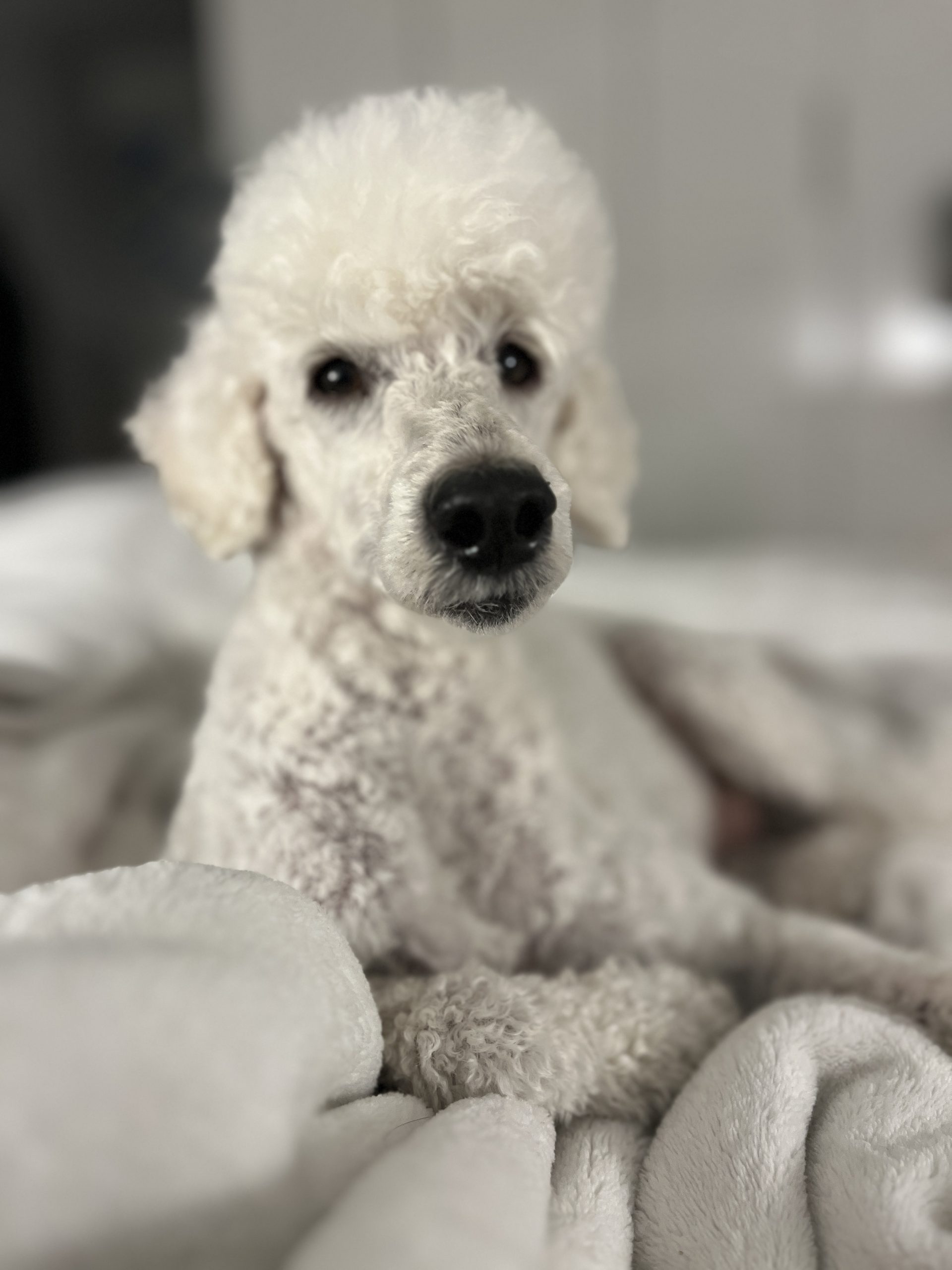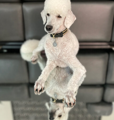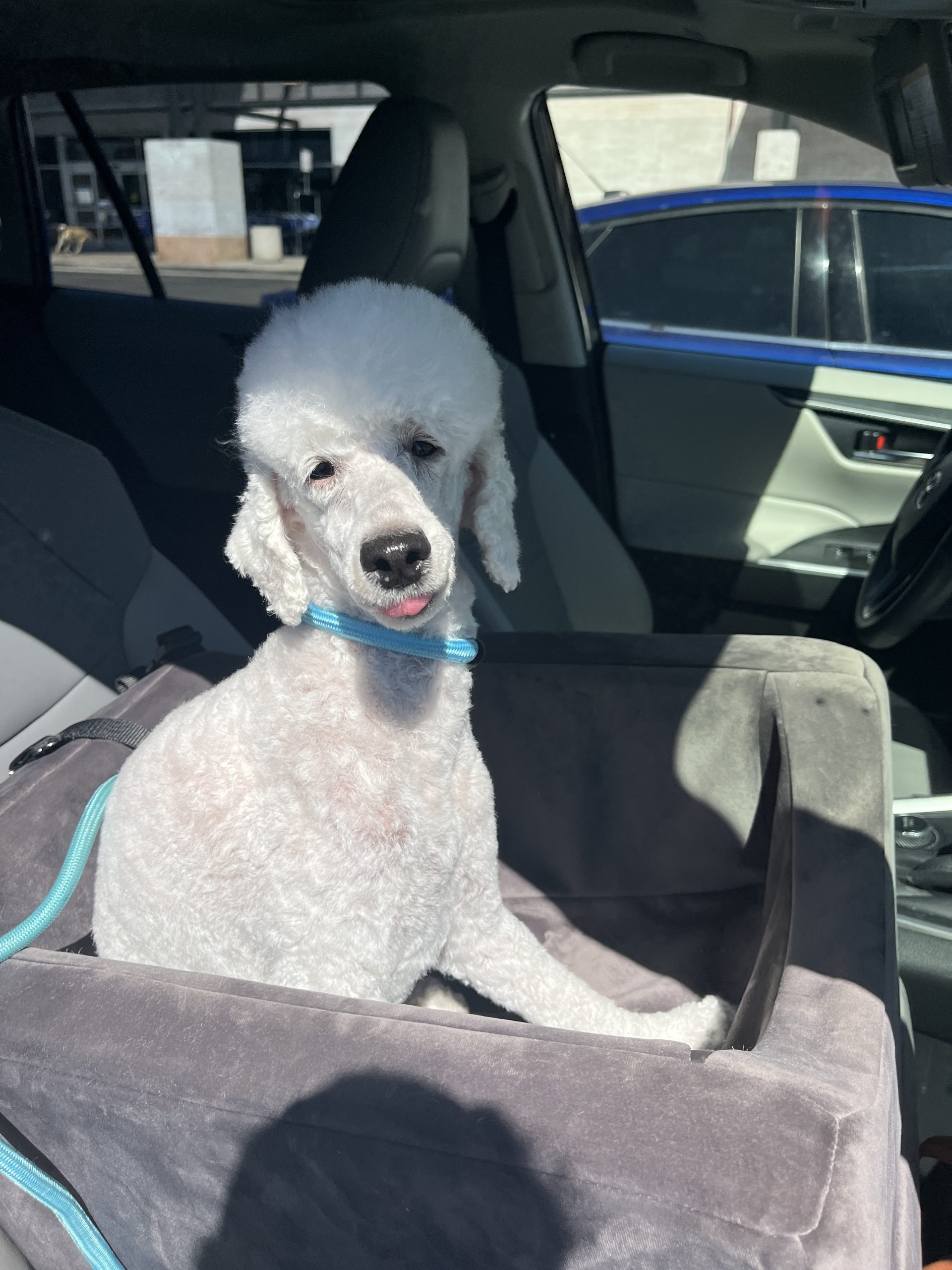 Corey is a 5-year-old, 12-pound miniature poodle with a penchant for stealing socks. While he takes his time warming up, he thrives in a calm environment with older kids and small female dogs. Corey is well-trained, articulate about his likes and dislikes, and truly affectionate with those who respect his boundaries. He enjoys being close to his person and is a fantastic car companion.