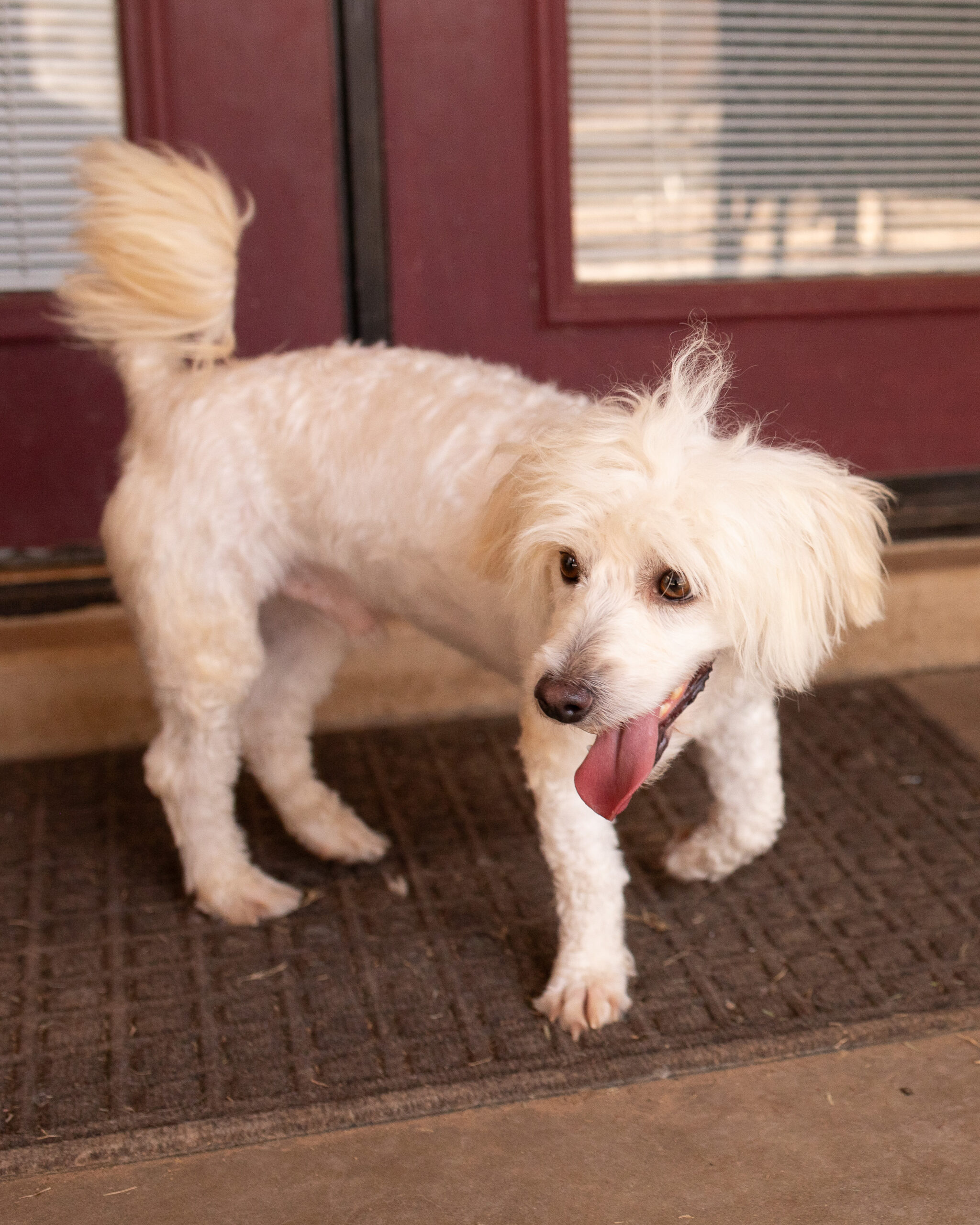 Harvey is a 2-year-old, 17-pound poodle mix cutie pie with a heart as big as his personality. Equal parts sweet and silly, Harvey will keep you laughing with his playful antics and then melt into your lap for snuggles.