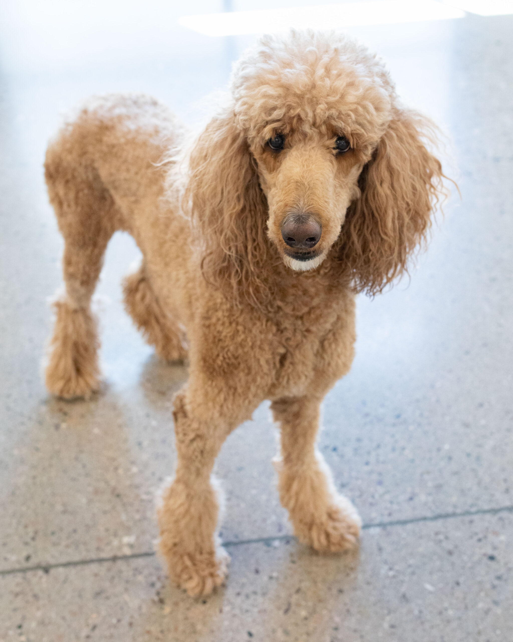 Jojo is a 4-year-old apricot Standard Poodle with a heart as bright as her beautiful curls. She’s affectionate, playful, and loves nothing more than spending time with her favorite people.