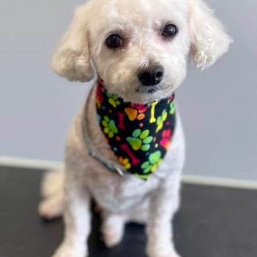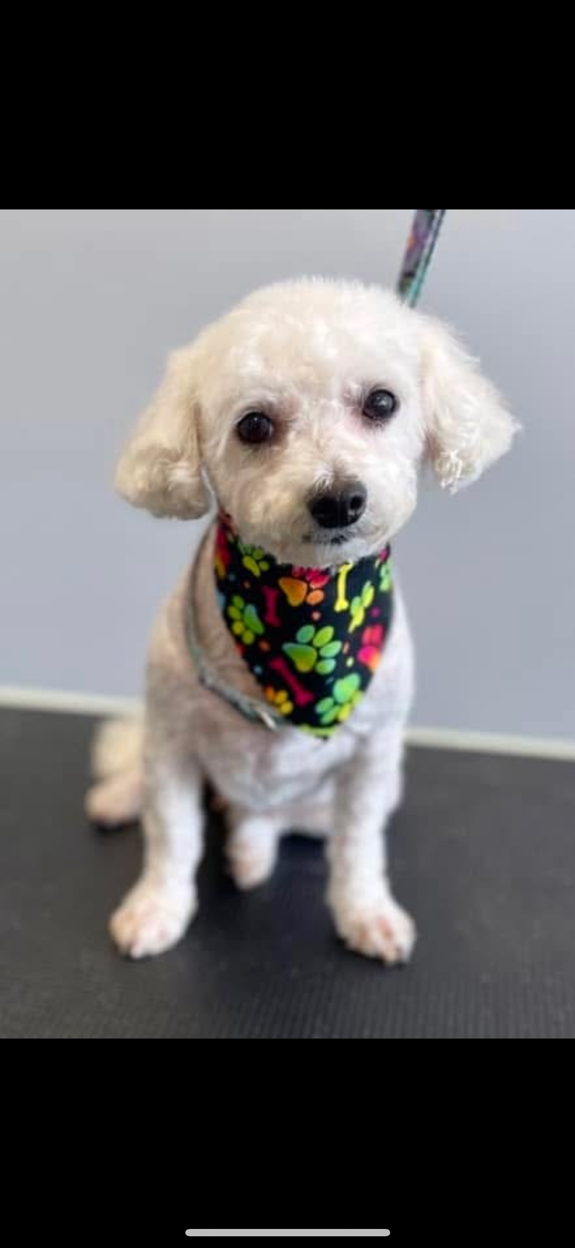 Lily was surrendered to the Arizona Poodle Rescue with her best friend and doggie hubby, Eli. Lily and Eli are a delightful duo and must be kept together. Eli is independent and enjoys playing with toys, while Lily craves cuddles and companionship; both are friendly and affectionate with humans. They sleep together, play together and overall just enjoy living in the same home together. Lily is a fluffy ball of love, cuddles and playfulness.