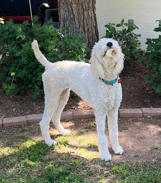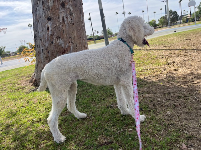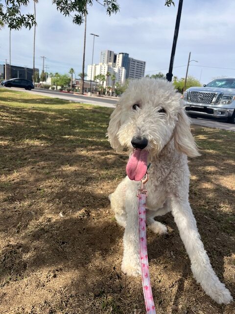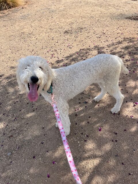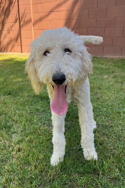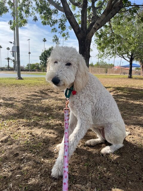 Marlee is an adorable 11-month-old white goldendoodle with a heart as golden as her fur is bright. She’s playful, sweet, and full of the happy-go-lucky spirit that makes goldendoodles so special. With her soft, wavy, hypoallergenic coat and sweet, expressive eyes, she’s impossible not to fall in love with.