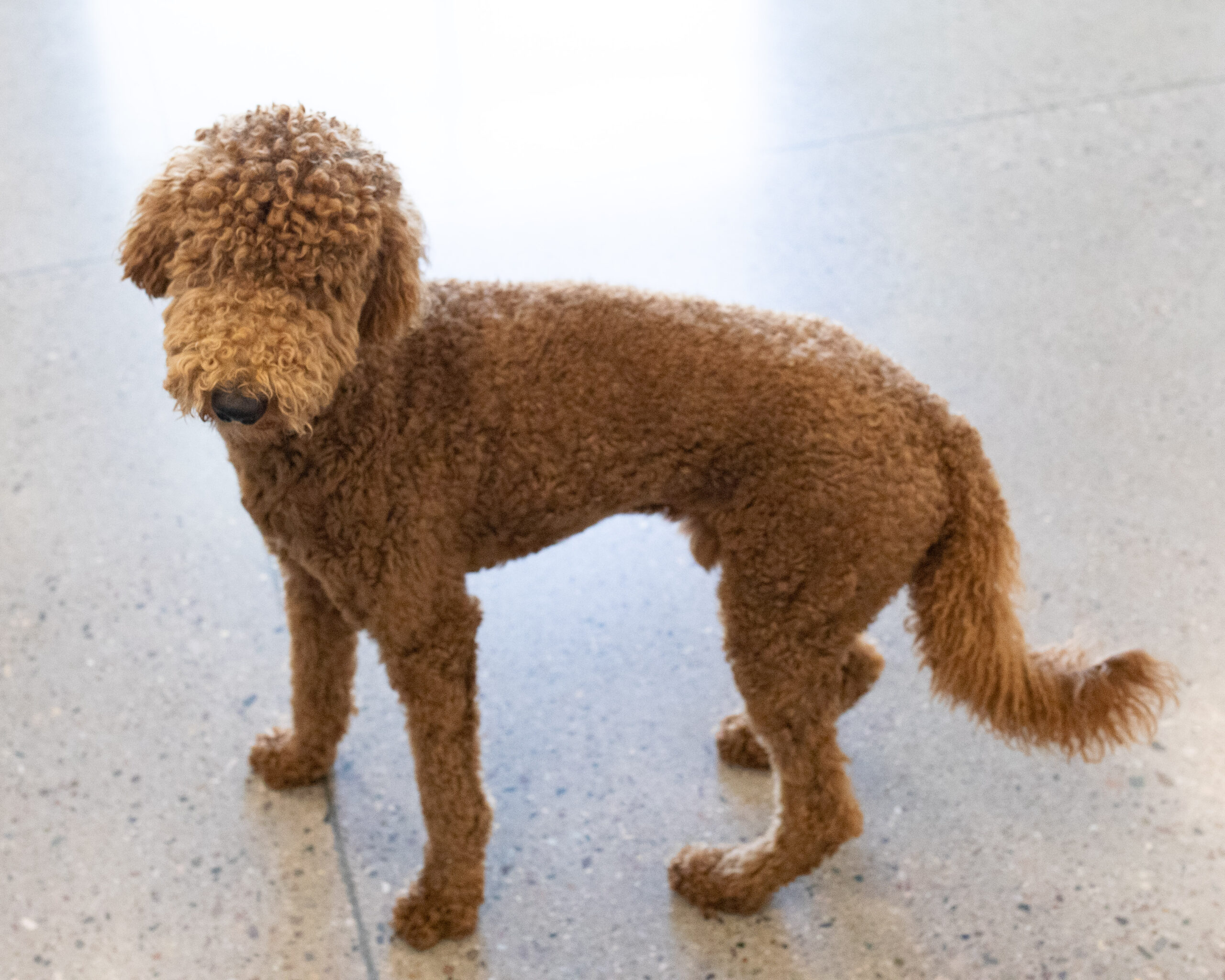 Paddington is a 1-year-old red Standard Poodle (smaller size) with the softest heart and the sweetest spirit. He’s timid and shy, and the world can sometimes feel a little overwhelming for him — but behind that bashful nature is a truly loving dog waiting to blossom.