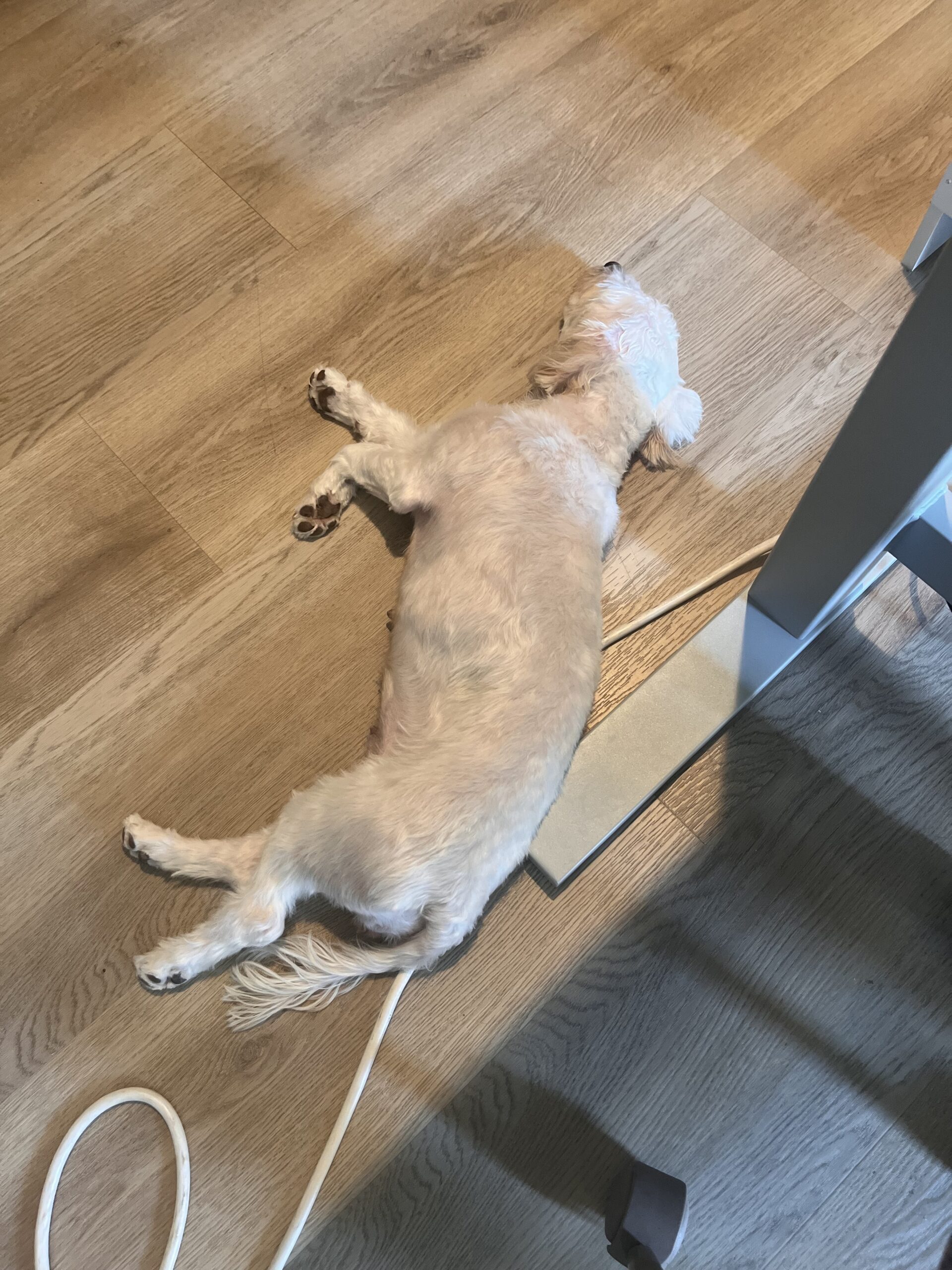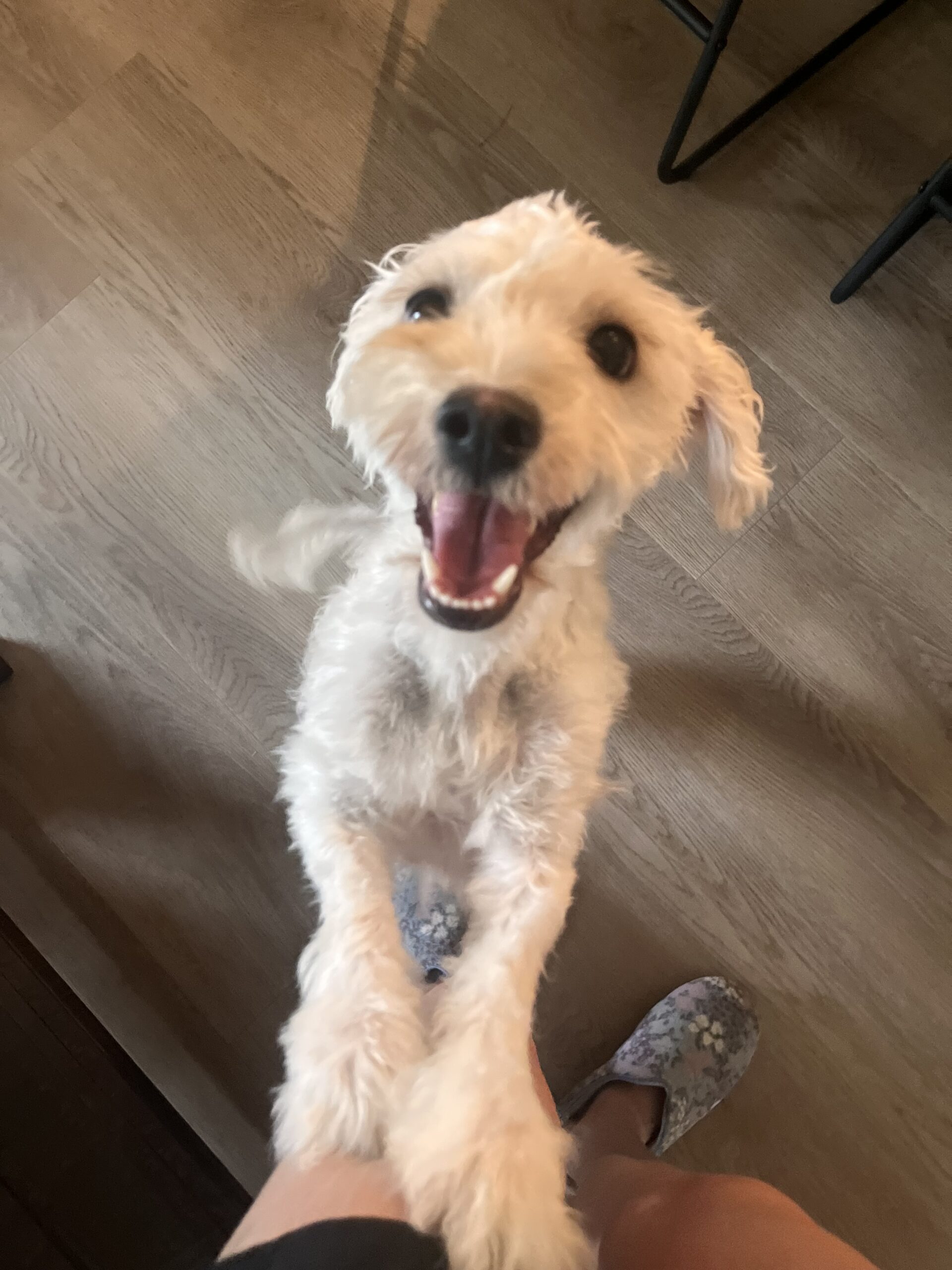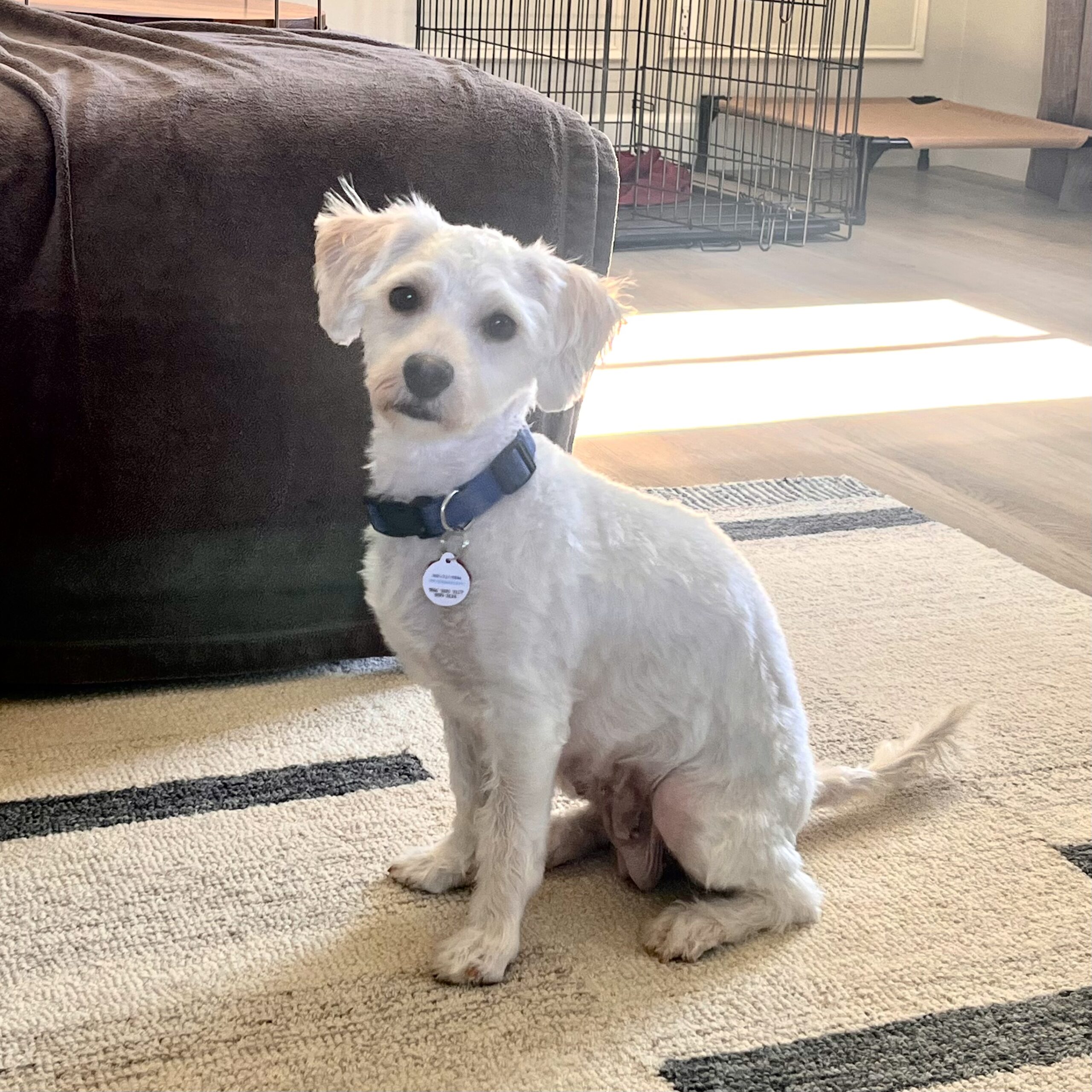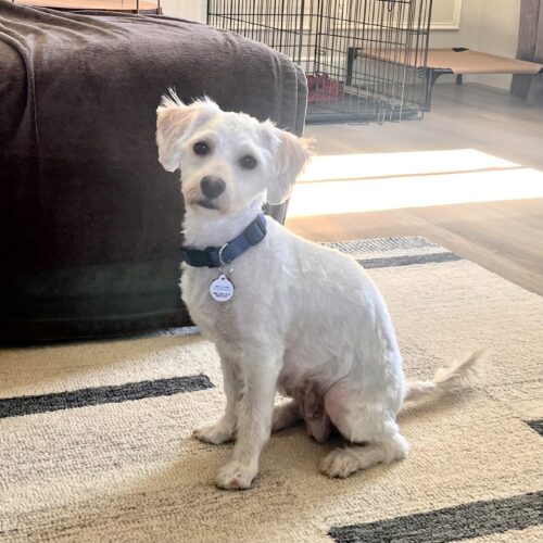 Shannon is potty trained and crate trained and is still building her confidence on a leash. She’s the perfect mix of cuddle bug and playmate—equally happy snuggling on the couch or joining in on the fun.