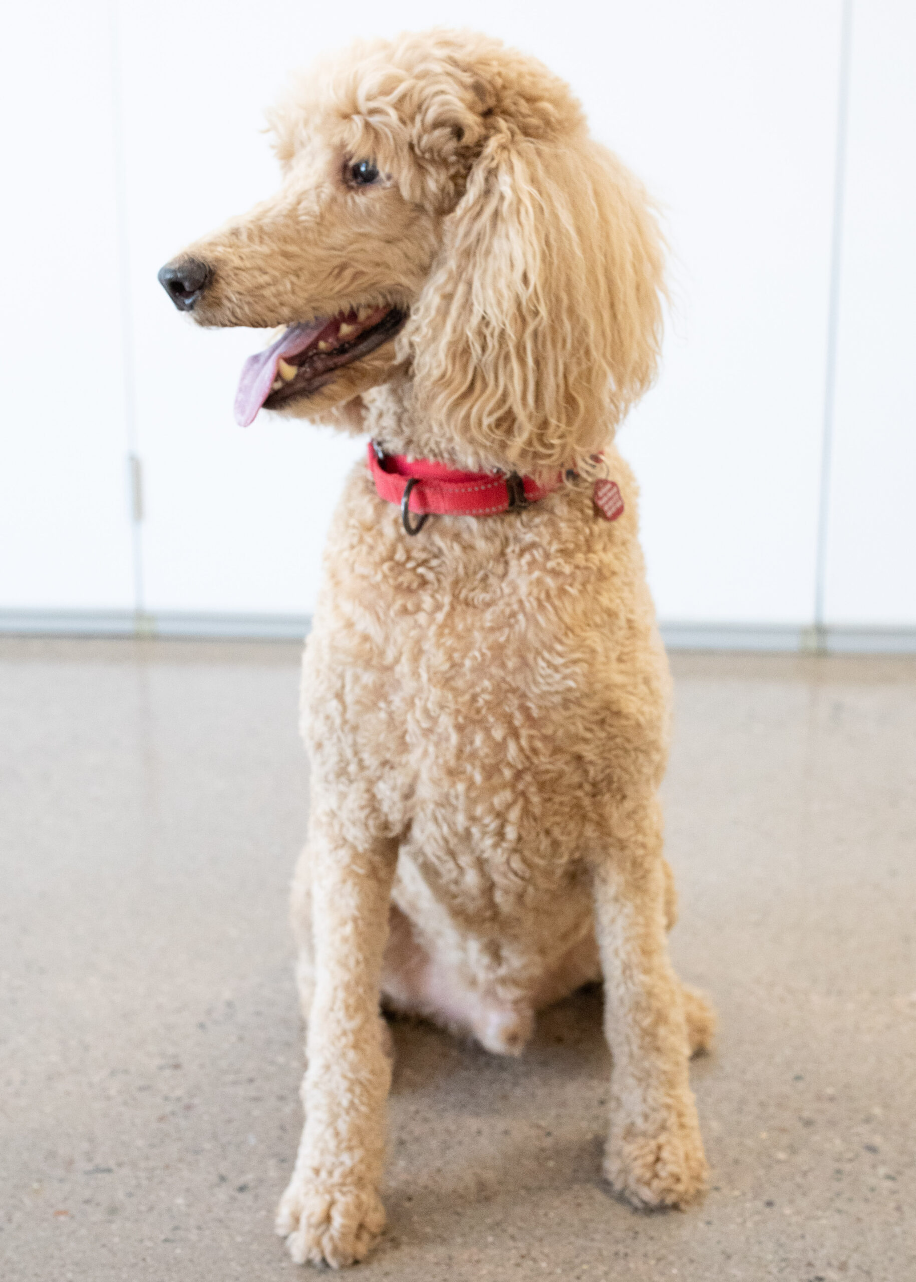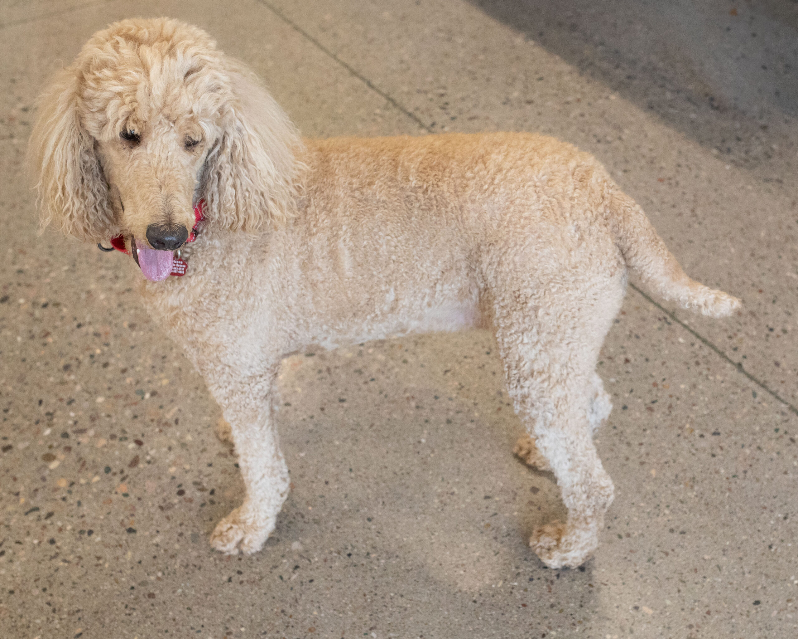 Teddy is a 4-year-old apricot Standard Poodle with the sweetest personality you could ask for. He’s a gentle, happy boy who absolutely loves people and gets along wonderfully with other dogs.